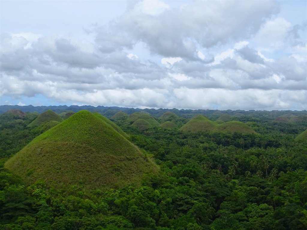 Von Manila ging es mit dem Flugzeug nach Bohol und dort direkt weiter auf eine kleine angrenzende Insel namens Panglao. Hier quartierte ich mich bei Vicky & Andy, in deren Backpacker Quartier „Lennons Place“, ein. Von den Beiden habe ich ja schon in meinem letzten Artikel geschwärmt, daher kürze ich das an dieser Stelle ab. Vier Nächte blieb ich, was ziemlich lang ist und zeigt wie wohl ich mich gefühlt habe. Das lag zum größten Teil an den Beiden, weniger am überlaufenen und wenig zum Sonnenbaden geeigneten Alona Beach. Zur Erklärung, und was ich vorher nicht wusste, Ebbe und Flut bestimmen hier ob es überhaupt einen Strand gibt. Das heißt bei Flut kommt das Wasser so dicht ans Ufer, dass es meistens keinen Strand zum Liegen gibt und bei Ebbe bleiben die ganzen Seealgen und leider allzu häufig auch der Plastikmüll am Strand zurück, was wiederum nicht zum gemütlichen Sonnenbaden einlädt. Also mietete ich mir rasch einen Roller und machte mich auf die Suche nach einem paradiesischen Strand. Ich fuhr und fuhr, durch die sengende Hitze, manövrierte den kleinen Roller durch aufgeweichte Dschungelpfade und fand…am Ende leider nichts. Das Wasser ist glasklar, azurblau und die Korallen schimmern unter der Oberfläche, aber mehr als eine kurze Erfrischung war für mich nicht drin. Dazu kam noch, dass das Wetter auf Bohol sehr unbeständig war. Früh strahlender Sonnenschein, ab 15 Uhr, danach konnte man die Uhr stellen, fing es an sich zu bewölken und zu regnen. Zwar nicht sintflutartig, aber immer noch genug. Wenn schon kein Strand, dann ab ins Landesinnere. Das rumcruisen macht mir immer noch riesig Spaß und so ging es zu den Chocolate Hills. Diese Formation von großen Hügeln verdankt seinen Namen der schokoladenähnlichen Färbung, die diese zu einer bestimmten Zeit im Jahr annehmen. Vorbei an Reisfeldern, durch kleinere Städte, mitten durch das Leben der Filipinos und immer begleitet mit einem freudigen Hallo der Kiddies. Dennoch zog mich nach fünf Tagen die Hoffnung auf besseres Wetter weiter.