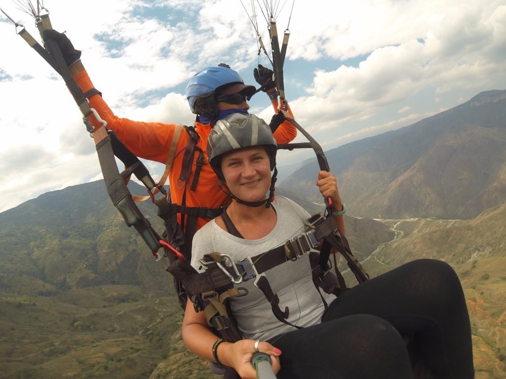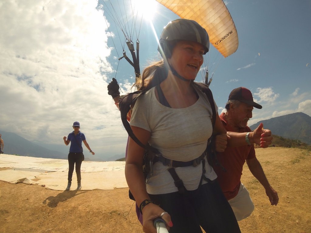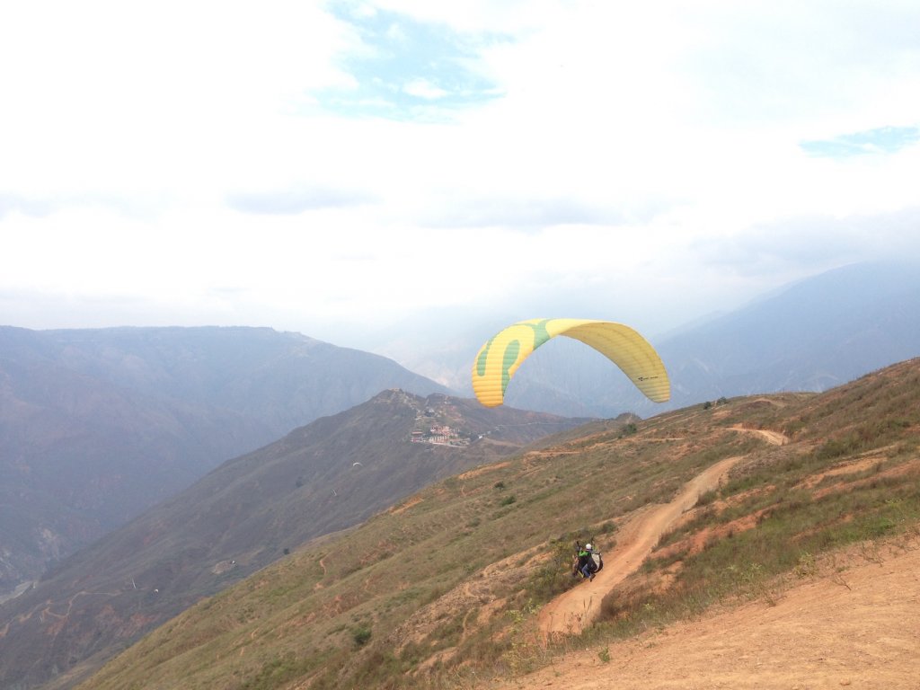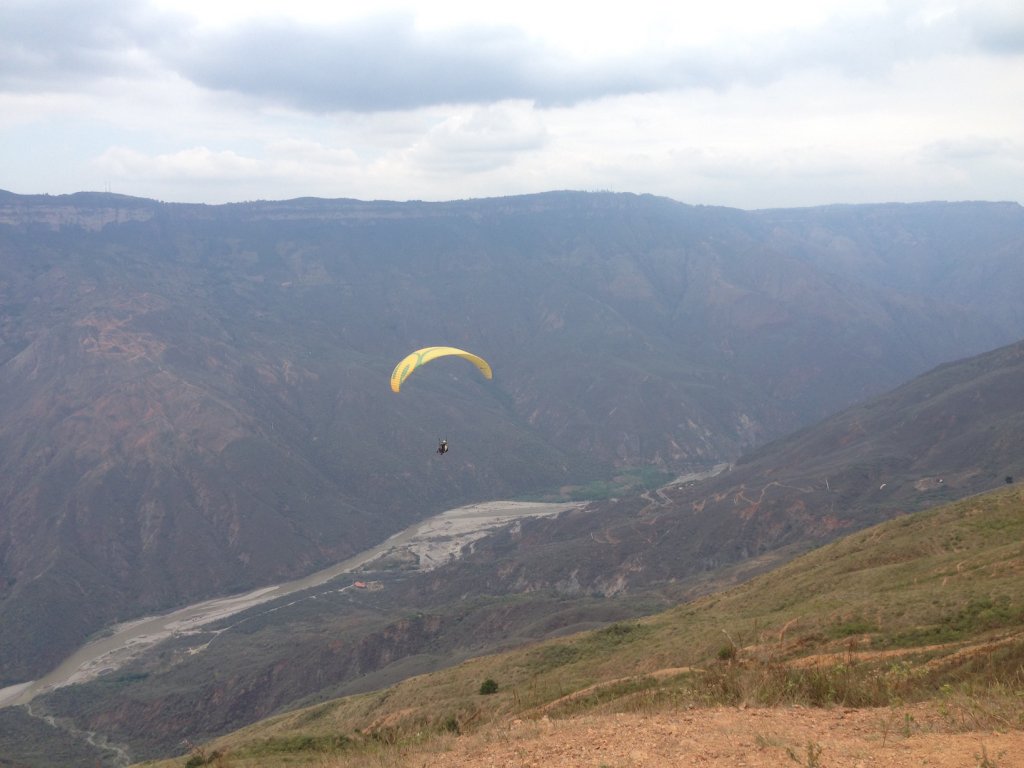 Nun war wirklich Abschied angesagt…unsere Wege trennten sich in Santa Marta. Der Nachtbus brachte mich ins Abenteuerparadies San Gil. Ich bin jetzt geografisch im Landesinneren von Kolumbien und sowohl die Landschaft als auch der Tourismus werden vom Chicamocha Canyon und zwei großen Flüssen dominiert. Entsprechend kommen Adrenalinjunkies hier voll auf ihre Kosten. Sei es mit Rafting, Canyoning, Biking, Bungee Jumping, Hiking oder eben Paragliding. Denn das war mein Abenteuer, welches hier auf mich wartete.