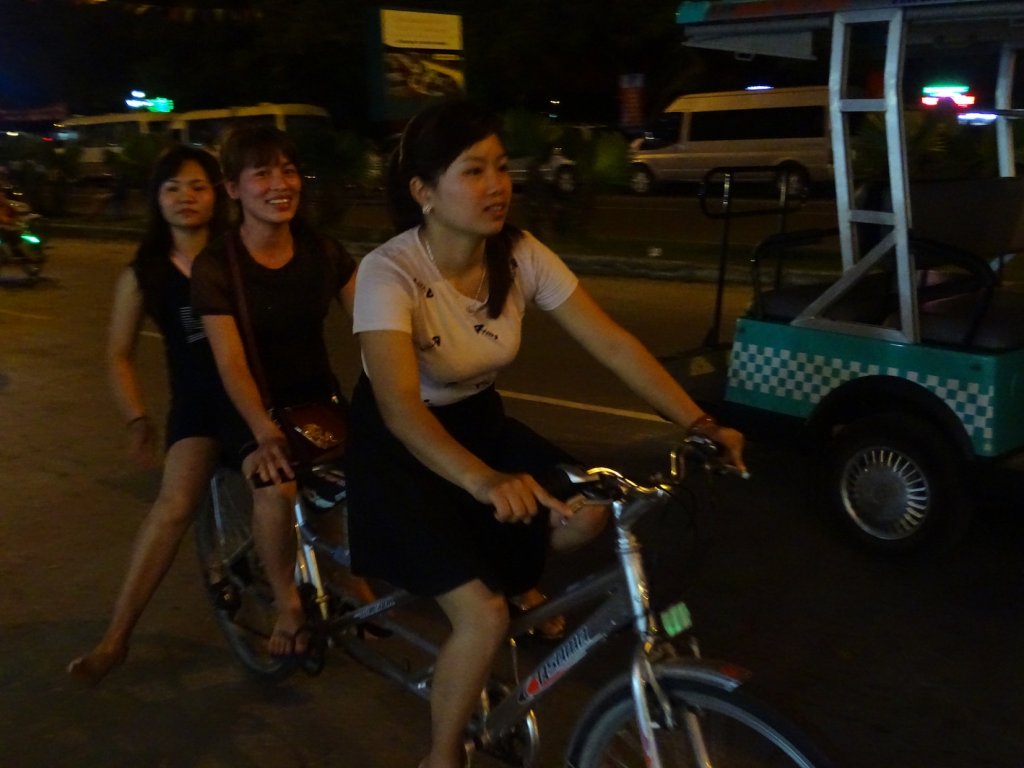 Unterwegs auf dem Boot merkte ich schon, dass ich krank werde. Die diversen Klimaanlagen fordern ihren ersten Tribut. Also ging ich es langsam an, wurde ganz lieb im Hostel mit Ingwertee bemuttert und tat mir selbst etwas leid, für einen halben Tag. Dann riss ich mich zusammen, stieg auf den Scooter und fuhr Richtung höchsten Punkt der Insel, um einen Gesamteindruck zu bekommen. Gen Abend verwandelt sich die Promende von Cat Ba in einen riesigen Vergnügungspark – vor allem die asiatischen Touristen drehen komplett durch – sei es beim Karaoke-Singen oder beim Tandem-/ Tridemfahren. Es ist ein Vergnügen dem Zuzusehen, allerdings nicht unbedingt dem ganzen Zuzuhören. Der Asiate singt nämlich sehr lautstark und vor allem falsch. Cat Ba war ein überaus gelungener Anfang für meine Vietnamtour – jetzt freute ich mich auf Hanoi. Hier gibt es von Papa zum Geburtstag ein Hotel spendiert – mit einem großen Zimmer und Bad nur für mich, mit echten Handtüchern und weißen Bettlaken, mit kleinem Balkon und einer Badewanne. Ich hätte ja nicht gedacht diese nutzen zu müssen, aber dank der Erkältung überleg ich es mir dann nochmal.