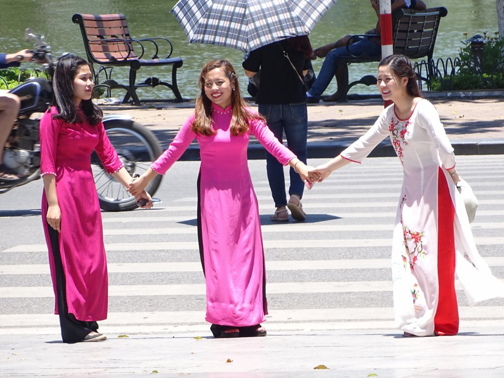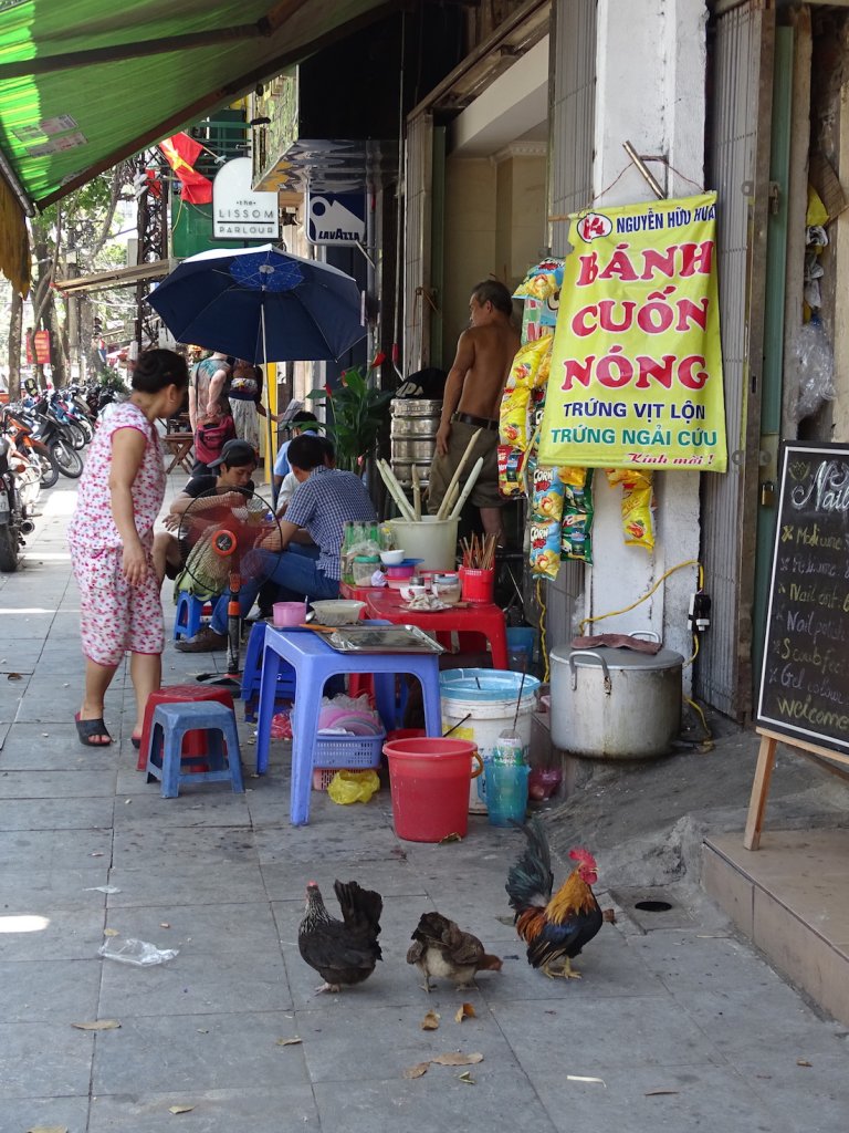 Gott sei Dank gibt es in Hanoi wenig architektonische Zeugen der sozialistischen Regierung. Breite Alleen, stalinistische „Prachtbauten“ und Exerzierplätze findet man nur wenige, wie auch klassische Sehenswürdigkeiten. Das Ho Chi Minh Mausoleum, die Citadelle, der literarische Tempel oder das „Hanoi Hilton“ sind keine unbedingten Must Sees – dann sich doch lieber in den kleinen und wuseligen Gässchen verlaufen und dem ganzen Trubel mit einem Grinsen auf dem Gesicht auf den Mini-Stühlchen und Höckerchen bei einem iced oder hot vietnamesischen Coffee aus dem Weg gehen. Ich bin ja ein Fan des vietnamesischen Kaffees, schön gesüsst mit Kondensmilch. Gestern bin ich daran aber fast verzweifelt. In einem klitzekleinen Kaffeeladen stand ich und habe verzweifelt versucht der Inhaberin zu erklären, dass ich „real vietnamese coffee with sweet milk“ haben möchte. Sie, ihre zwei Teenagerkinder und zwei andere vietnamesischen Gäste wussten damit überhaupt nix anzufangen. Dann rief sie vermutlich ihre andere Tochter an, der ich es dann wiederum erklärt habe und dann schienen alle verstanden zu haben. In der Küche habe ich auch eine Büchse Kondensmilch gesehen und auf diese gezeigt. Alle nickten zustimmend und ich freue mich auf meinen Kaffee. Der kam dann auch… mit einem Herzchen verziert….als ich dann aber umrührte war das Herzchen leider das einzige aus Kondensmilch Ich hatte einen wirklich leckeren Mokka bekommen, aber ich wollte doch einen Kaffee mit süßer Milch 🙁 Ich gebe nicht auf, gleich probier ich es noch einmal.