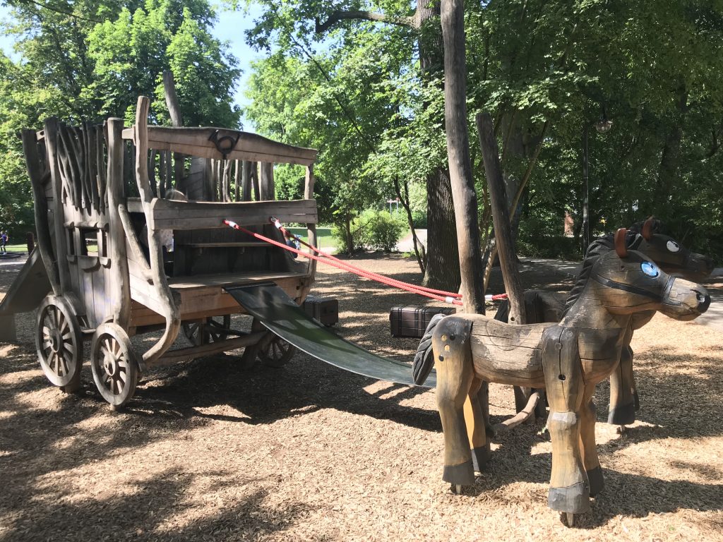 Viel weiter als bis zum Konservatorium bin ich als Kind eigentlich nie gekommen. Das hole ich heute nach und entdecke am Ende vom Puschkinpark das alte Jugendzentrum, welches seine Türen für Familien und Jugendliche öffnet. Davor ein riesiger Spielplatz mit einer lebensgroßen Holzimitation des Cottbusser Postkutschers.