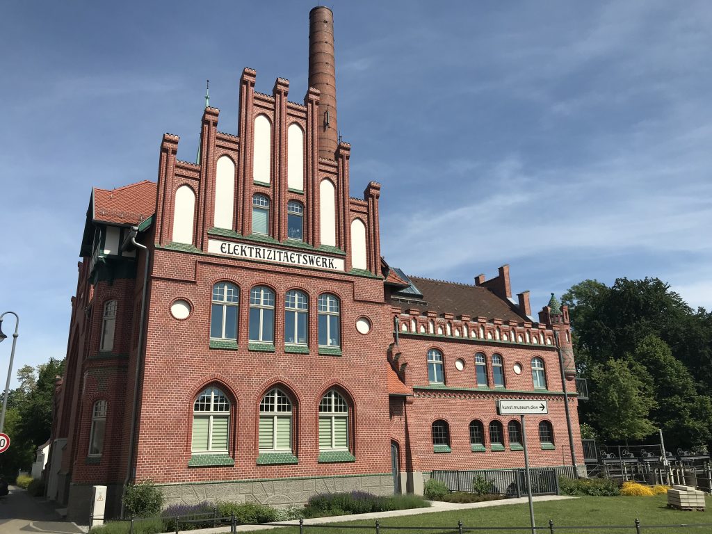 Das Elektrizitätswerk wurde mit viel Liebe wieder zum Leben erweckt und bietet heute Platz für Kunstausstellungen und andere Events. Von hier aus laufen wir ein kurzes Stück im Goethepark entlang, und machen Rast am Amtsteich. Zu unserer rechten taucht plötzlich ein mir bis dato völlig unbekannter Ziegelbau auf – das alte Dieselkraftwerk und heutige Kunstmuseum Cottbus.