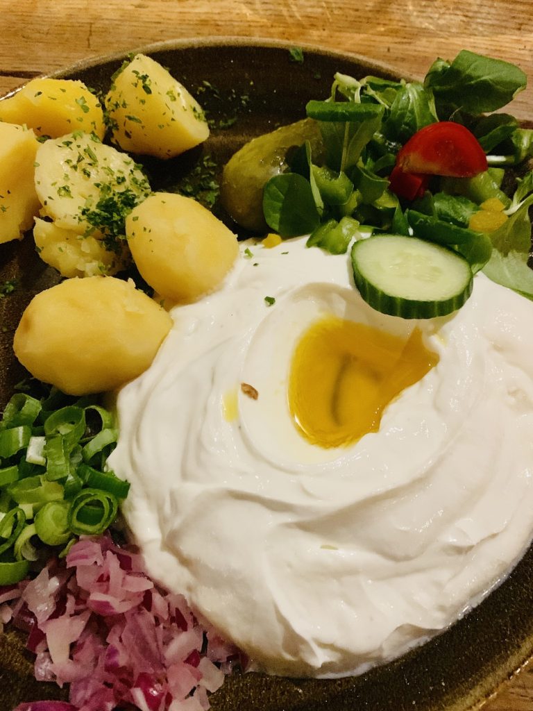 An das Resort angegliedert ist eine hauseigene Brauerei. Diese nutzen wir am ersten Abend. Auf der Karte stehen regionale und saisonale Spezialitäten. Soljanka, Grützwurst, Gulasch, ein Jausenteller (Brot mit Schinken und Gurken) und natürlich die berühmten Pellkartoffel mit Quark und Leinöl.