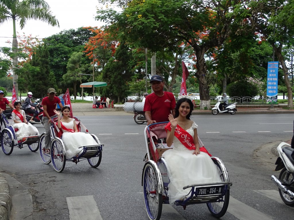 Es lebe der Scooter – mein Gott, was habe ich auf den letzten Reisen wohl alles verpasst. Aber besser spät als nie. Mittlerweile genieße ich das Fahren und kann die nächste Tour gar nicht mehr abwarten. Fahrrad fahren ist was für Luschen, mir kommen nur noch PS untern Hintern. Die Tour rund um Hue war genial. Zum eincruisen ging es ein paar Meter durch die Stadt, vorbei an den Schönsten der Schönen. Am Abend zuvor wurde wohl die Miss Hue gewählt und heute sind alle Teilnehmerinnen zum Winken in der Stadt rumkutschiert worden. Dann haben wir uns raus gewagt – zum Minh Mang Tomb. Der Weg ist ja bekanntlich das Ziel – und so war das spannendste natürlich die Fahrt über Stock und Stein, inkl. einem kurzen Ausflug auf die „Autobahn“. Nächster Stop – der Strand. Ich hatte mir eine Unterkunft direkt am Strand rausgesucht, da ich noch ein, zwei Tage Strand einschieben wollte. Und so rollerten wir zum nächsten Ziel und fanden das Paradies. Nicht nur die Unterkunft, auch die Route direkt durch die Dörfer und vorbei an Land und Leuten war paradiesisch. Leider haben wir uns etwas in der Zeit verplant – so ein Scooter ist dann doch keine Rennmaschine und wir mussten unsere Scenic Route leider abkürzen. Im Dunkeln heizten wir zurück in die Stadt und so schön wie der Ausflug war, ich war heilfroh, als ich ohne Zwischenfällt den Kleinen abgeben konnte. Mir haben Beine und Hände gezittert – vor Euphorie und Erleichterung. Das Bier danach hatten wir uns wirklich verdient.