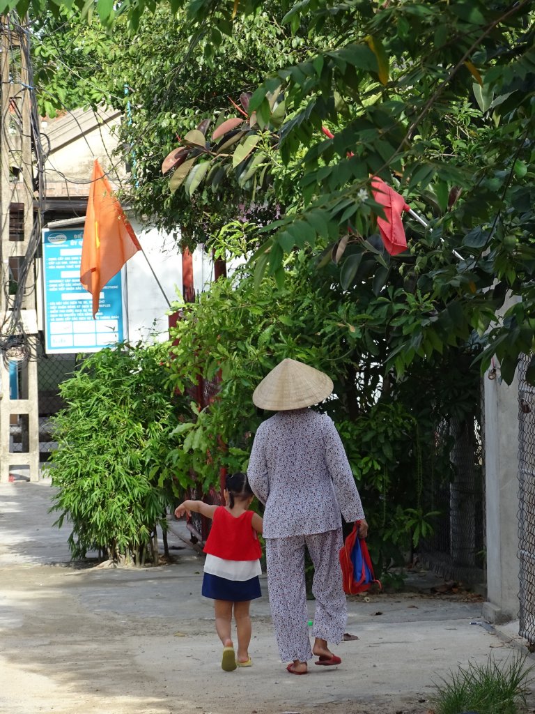 Ich bin ganz fasziniert von Vietnam. Hatte ich am Anfang ja noch so meine Schwierigkeiten mit den Menschen, sind sie mir mittlerweile richtig ans Herz gewachsen. So viel Freundlich- und Herzlichkeit. Ich bin immer noch ganz schön am Husten und sofort wird nach meiner Gesundheit gefragt, ich mit sorgenvollen Blick betrachtet und meine Temperatur geprüft. Oder heute Mittag, als ich auf den Bus gewartet habe, wurde mir ein Glas frisch gepresster Zuckerrohrsaft vor die Nase gestellt oder eben die Einladung zum Familienabendessen.