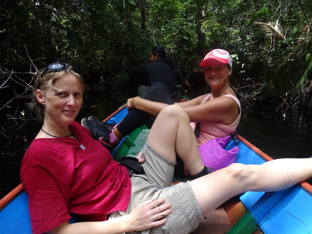 Und noch gefangen, von dem was ich da gerade erlebt habe, geht es zurück zum Boot. Dort werden wir schon mit eiskalten Handtüchern und einem Erfrischungsgetränk erwartet. Denn wir sind alle einmal komplett durchgeschwitzt, die Feuchtigkeit ist immens hoch hier im Dschungel.