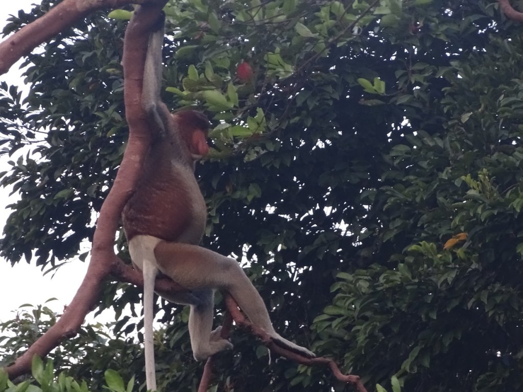 Wenn Nasenaffen um die Alphaposition in einer Herde kämpfen kommt es nicht zu blutigen Auseinandersetzungen. Hier reicht bereits Zähne blecken, das größtmögliche aus der Körperhaltung herausholen und den dicksten Ast ordentlich durchschütteln, um den Gegner einzuschüchtern und die Herde zu übernehmen oder zu behalten. Unsere Schlafstelle für diese Nacht war unter einem Baum, den sich auch eine kleine Herde Nasenaffen für diese Nacht auserkoren hatten.