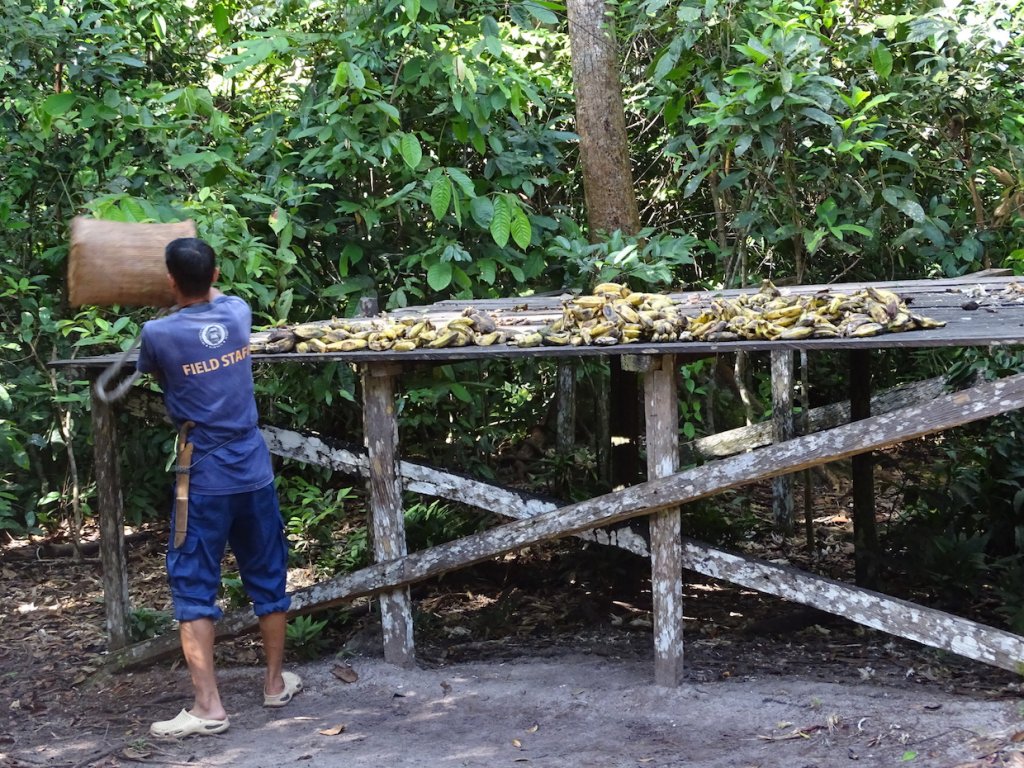 Und dann kommen sie langsam und nacheinander, wie es die Hierarchie untereinander verlangt, zur Plattform geklettert und stopfen so viel Bananen wie möglich in sich herein, um dann dem nächsten Platz zu machen.