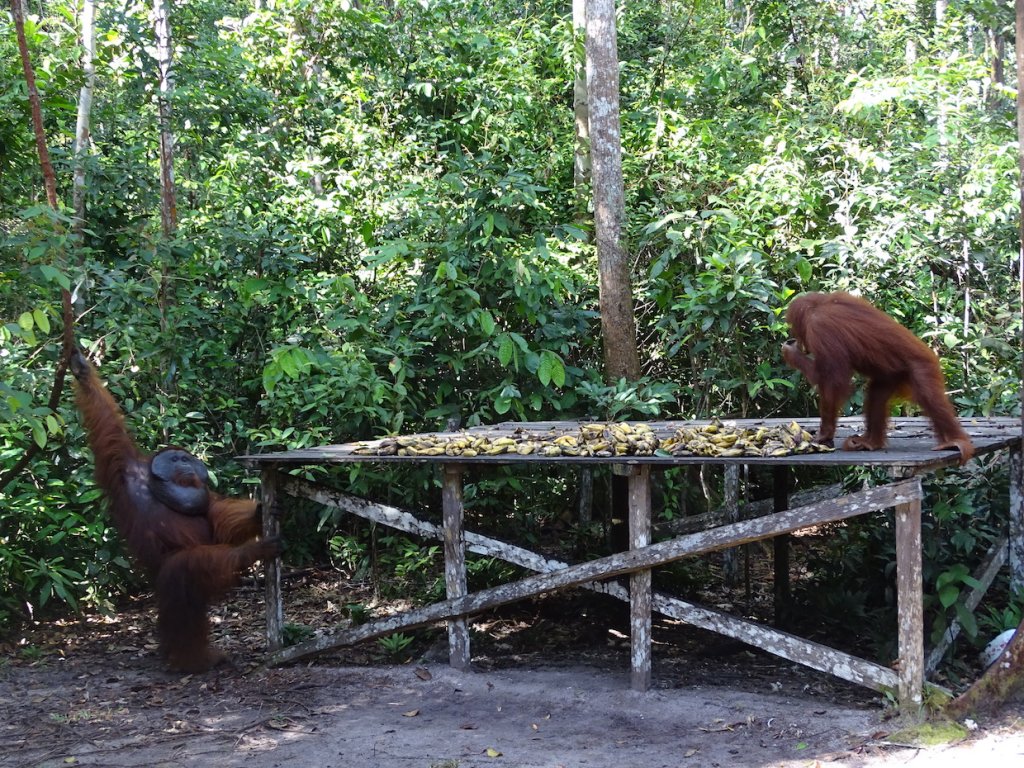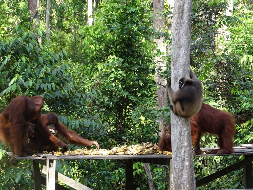 Camp Leaky wurde 1971 gegründet und ist DAS Zentrum zur Erforschung des Wesens der Orang Utans. Gleichzeitig ist es ein Rehabilitationszentrum für Waisen und verletzte Tiere. Biruté Galdikas, die Gründerin, ist im Prinzip das, was Diane Fossey für die Gorillas und Jane Goodall für die Schimpansen war. Ihr ist mehr oder weniger das komplette Wissen über das Wesen der Orang Utans zu verdanken. Und die Forschungsstation wird auch bis heute noch rege genutzt. Als Extra gab es diesmal nicht nur wunderschöne Orang Utans zu sehen, sondern auch Max, einen Gibbon.