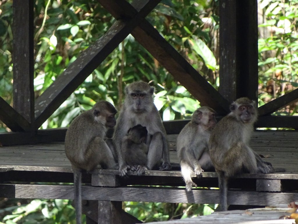 Am Camp Leaky, der dritten Station, wurden wir schon von den frechen Malakaken erwartet. Die warten hier geduldig auf die Boote, um sich dann blitzschnell auf das Obst und alles Essbare auf den Tischen zu stürzen und dann in Null Komma Nix wieder runter vom Boot zu sein. Wir konnten es live beobachten.