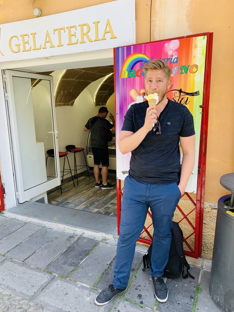 In Alghero angekommen machen wir erstmal eine Eis-Pause, bevor es dann mit dann eine gut 1,5 stündige Stadtführung gibt. Danach bleiben uns weitere 1,5 Stunden, die wir in Wein und Essen investieren und noch einmal durch die Straßen der Stadt laufen.