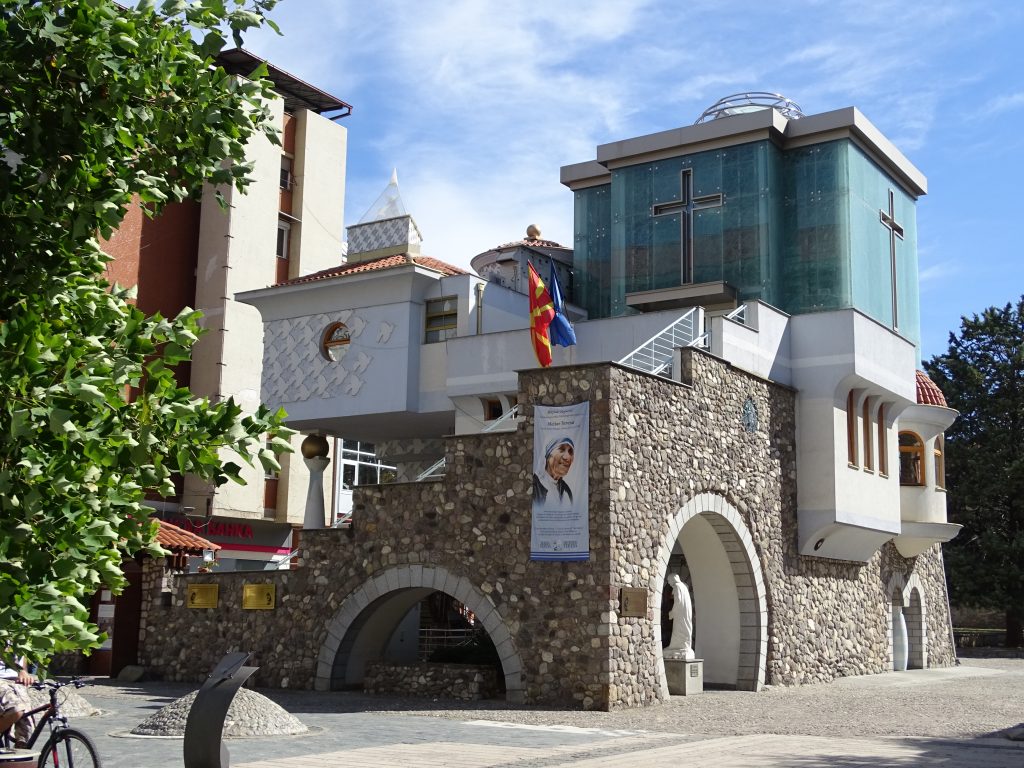 Im Zentrum befindet sich der Erinnerungsstein an das Geburtshaus von Mutter Theresa. Noch so eine Persönlichkeit, um die sich einige Nationen streiten: