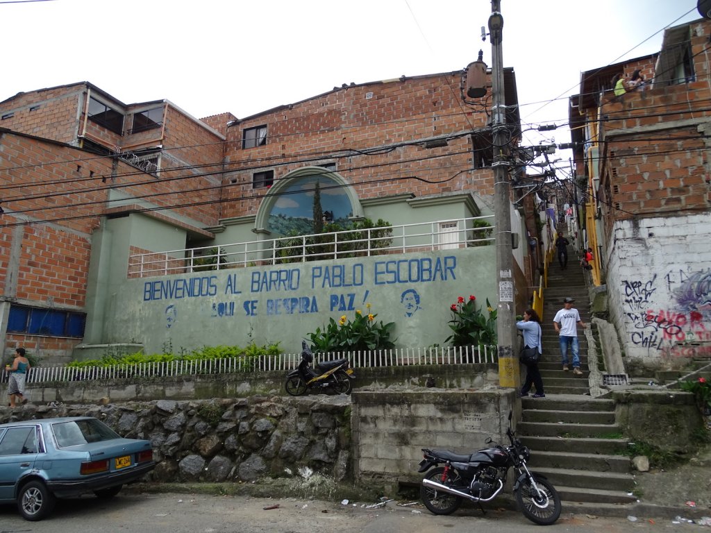 Friedhof, Haus wo er erschossen wurde, ein Hotel welches im Rahmen der blutigen Auseinandersetzungen zwischen dem Cali- und dem Medellin-Clan zerbombt wurde und gerade erst wieder aufgebaut wird. Von weitem sahen wir das für Voldemort errichtete Gefängnis, in dem er „freiwillig“ seinen Hausarrest absaß und zu guter Letzt noch ein Abstecher ins „Barrio Pablo Escobar“, welches er für die Armen und Obdachlosen errichten ließ.