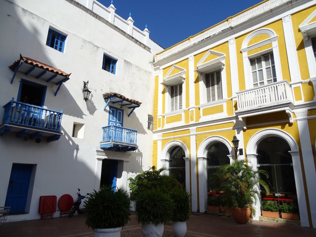 Als wir am Abend in Cartagena landen empfängt uns die bekannte und geliebte Schwüle der Karibik. Und die Zeiten von kleinen, engen, Schlafsälen sind auch erstmal vorbei. Wir logieren im Casa Bustamante, einer traumhaft schönen Kolonialvilla unweit vom historischen Zentrum und dem Strand.