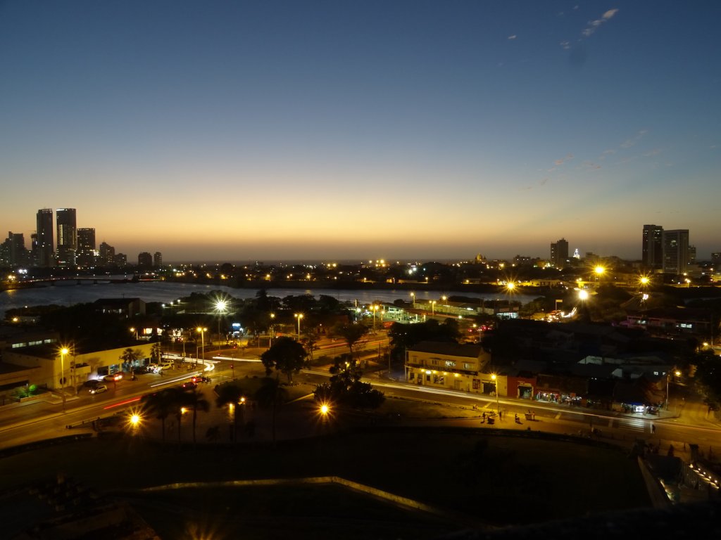 Die Altstadt ist für die Touristen ordentlich aufgepäppelt worden. Einige noch nicht renovierte Ecken erinnern mich sehr an Havanna – dank der karibischen Temperaturen, blauem Himmel und Sonne satt fühle ich mich tatsächlich wie in der Karibik. Gegen Sonnenuntergang zieht es uns zum Fort wo uns Cartagena in seiner ganzen Größe und Ausmaß beeindruckt.