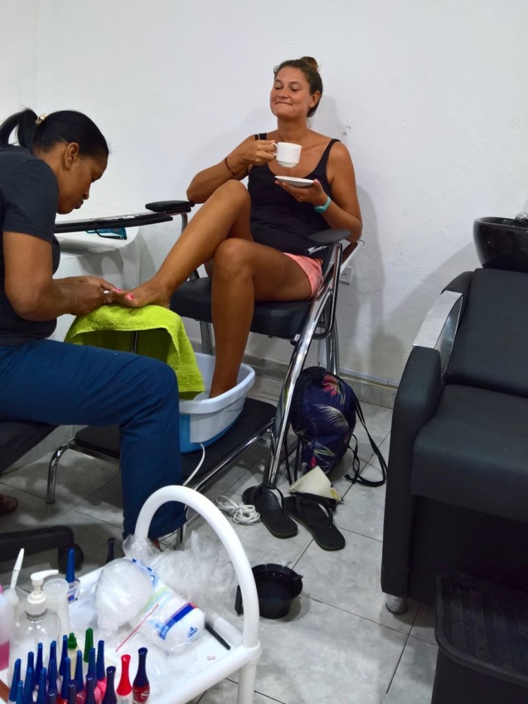 Zum Baden lädt Cartagena allerdings nicht ein, dafür aber zum Schlendern und Lustwandeln und zum „Wellnessen“. Denn wer hätte es gedacht, bereits auf den ersten Metern unseres Stadtspaziergangs werden wir wortwörtlich abgeschleppt: Mani- und Pediküre für weniger als 10€. Und Bartstutzen für Jörn ist auch noch drin. Frisch gewienert spazieren wir 2h später durch die bezaubernde Altstadt – schlappern frisches Obst und Eiscreme und landen am Ende bei Cuba Libre.