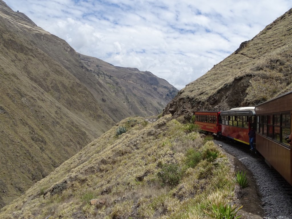Mit einem traditionellen, touristisch aufgepeppten, Zug geht es die 12km mit einer Geschwindigkeit zwischen 20-25km/h und zum Teil manuell betriebenen Bremsen nach Simbambe. Das Besondere ist, dass der Zug die Höhe nur durch Zig-Zag-Fahren bewältigen kann. Die Zugfahrt ist schön und eine nette Abwechslung, aber leider eben doch nur für Touristen ausgelegt und kein MUSS für einen Ecuadorurlaub.