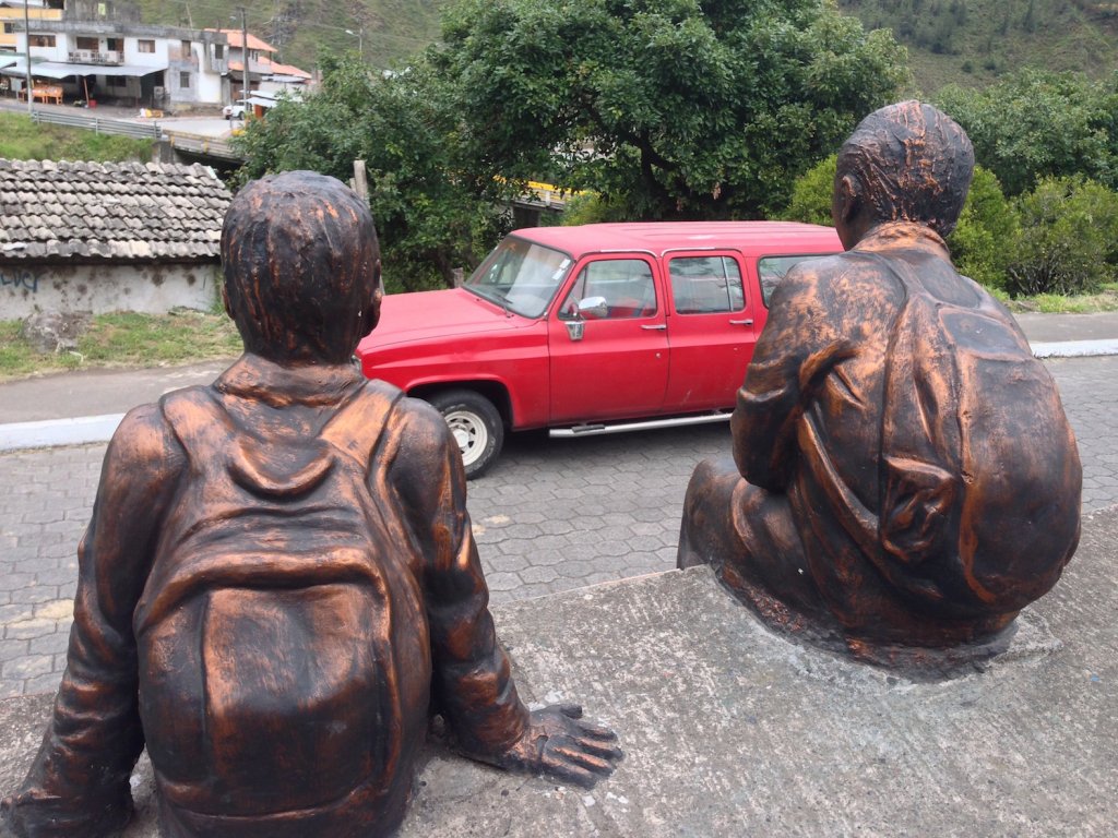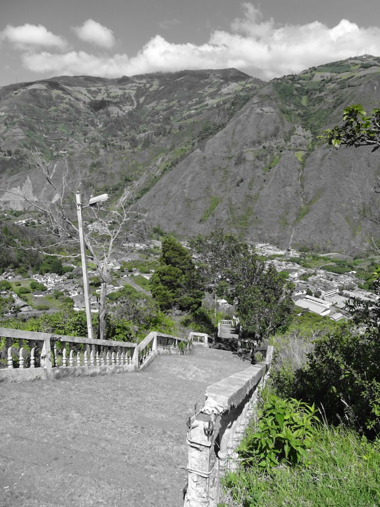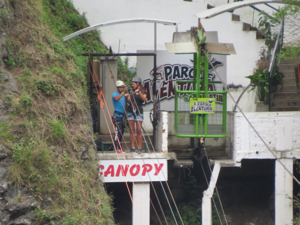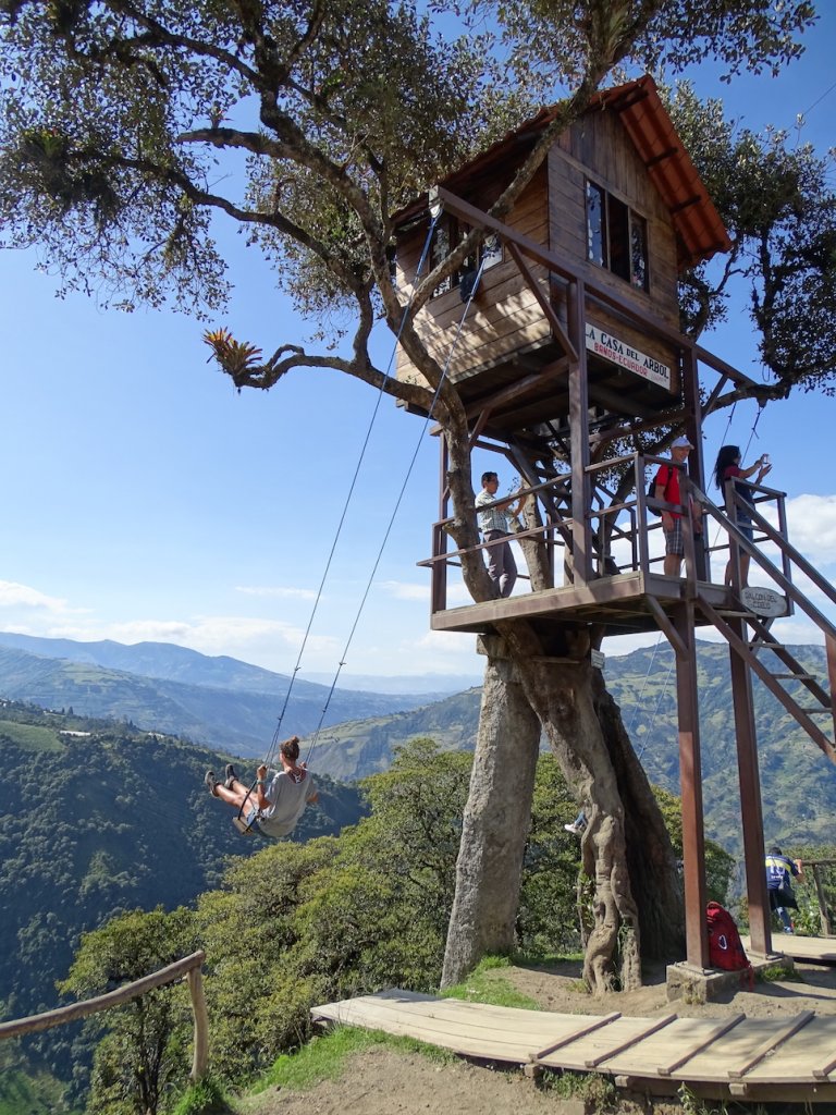 Nach diesem Kurzaufenthalt sitze ich wieder im Bus und weitere 4h später erreiche ich Baños, das Outdoor-und Heiße Quellen-Paradies. Da ich in Kürze für gut 3 Wochen nur noch faul am Strand herumliegen werde  á la ein Galapagos-Seelöwe und vermutlich Cola-Rum mein Wasser sein wird, will ich mich die letzten Tage davor noch körperlich auspowern. Deshalb schreckt mich auch nicht die 4h Wanderung zum Casa del Arbol ab, auch wenn es wieder bergauf bedeutet.