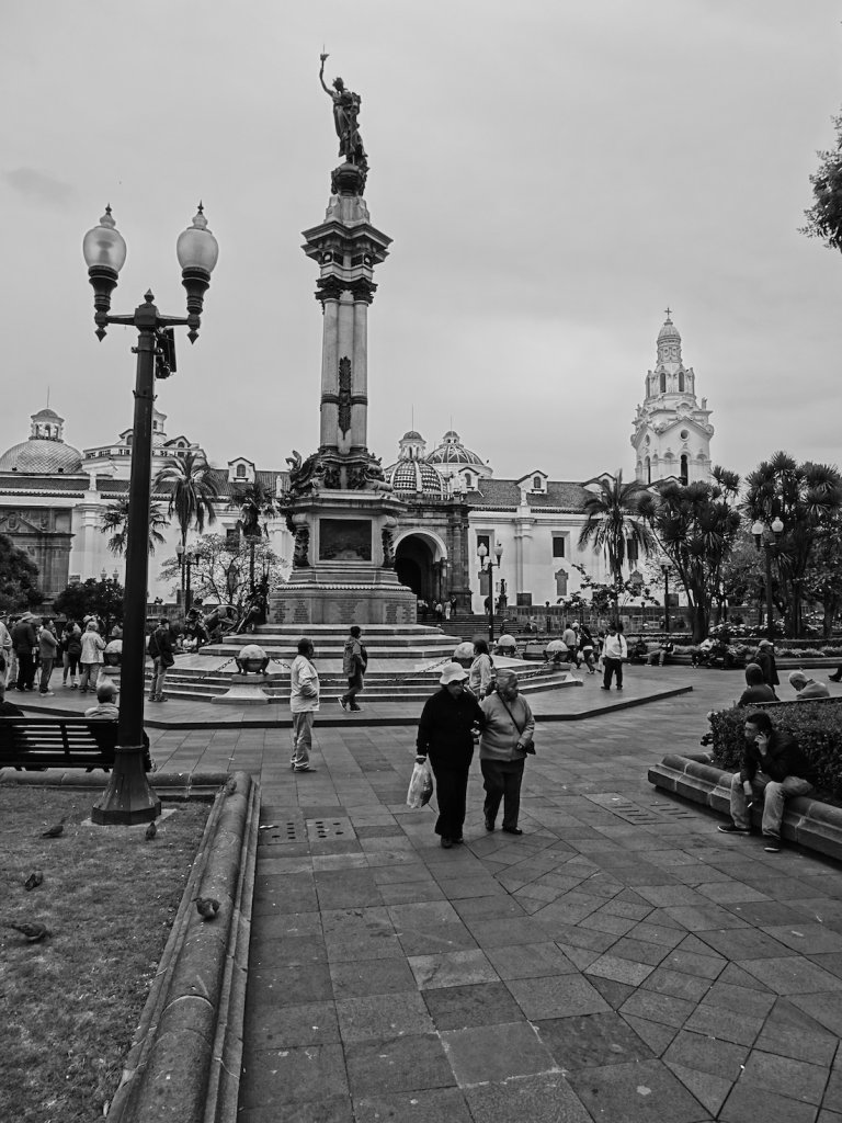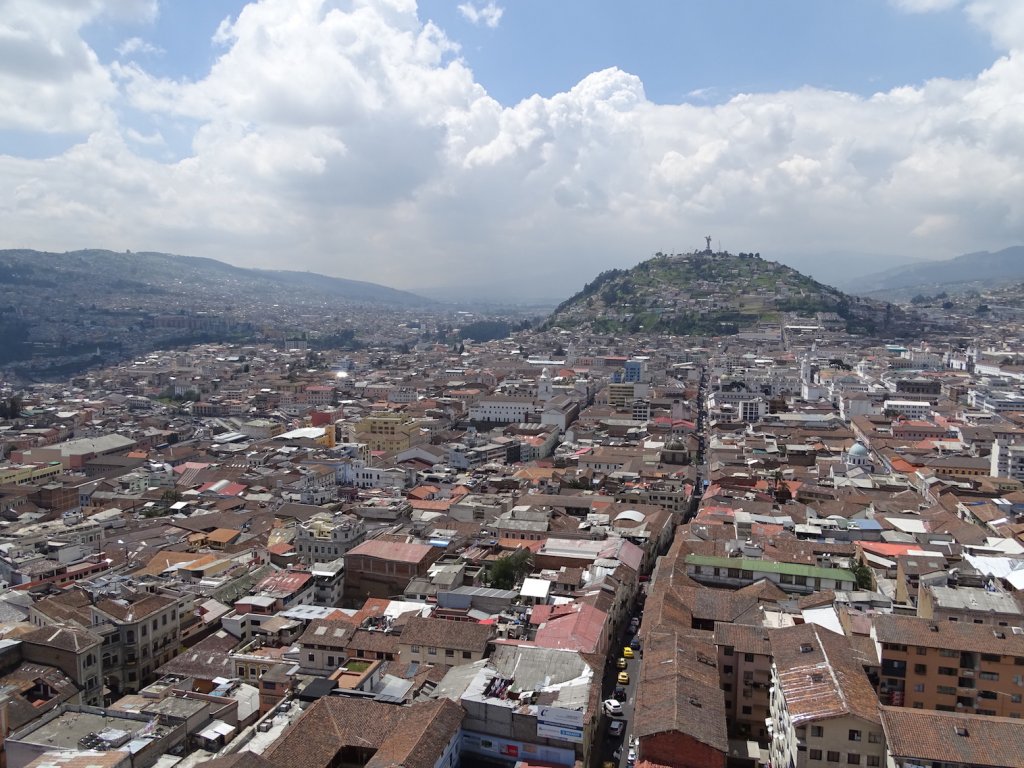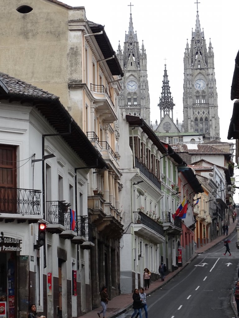 Die nächsten 4 Tage streifte ich durch die Straßen der Stadt oder ließ mich fahren – je nach dem wie ich gerade Lust und Kondition hatte. Quito ist die zweithöchste Hauptstadt der Welt – und nach La Paz, Titicacasee und der Salar de Uyuni dachte ich, dass ich mittlerweile eigentlich an die Höhe gewöhnt wäre. Aber das bergauf und bergab nötigte mir einiges ab. Während früh morgens immer die Sonne strahlt, ziehen ab Mittag dicke Wolken auf und ergießen sich dann spätestens am Nachmittag in einem heftigen Gewitter. Also frühmorgens das Sightseeingprogramm abgearbeitet:
