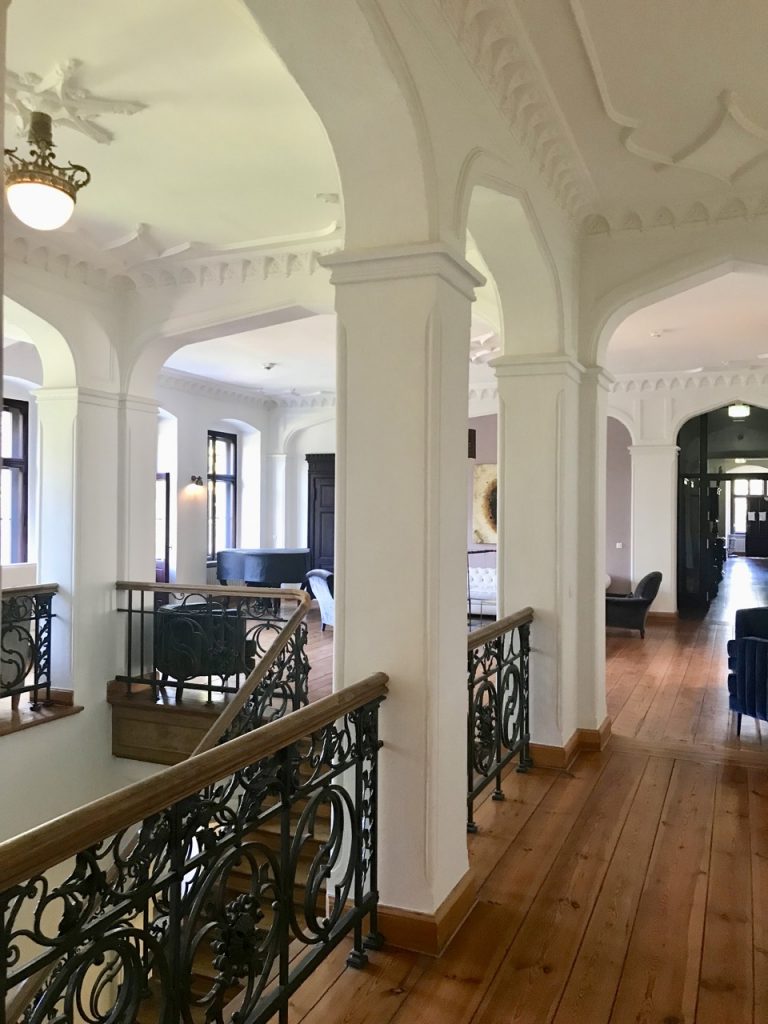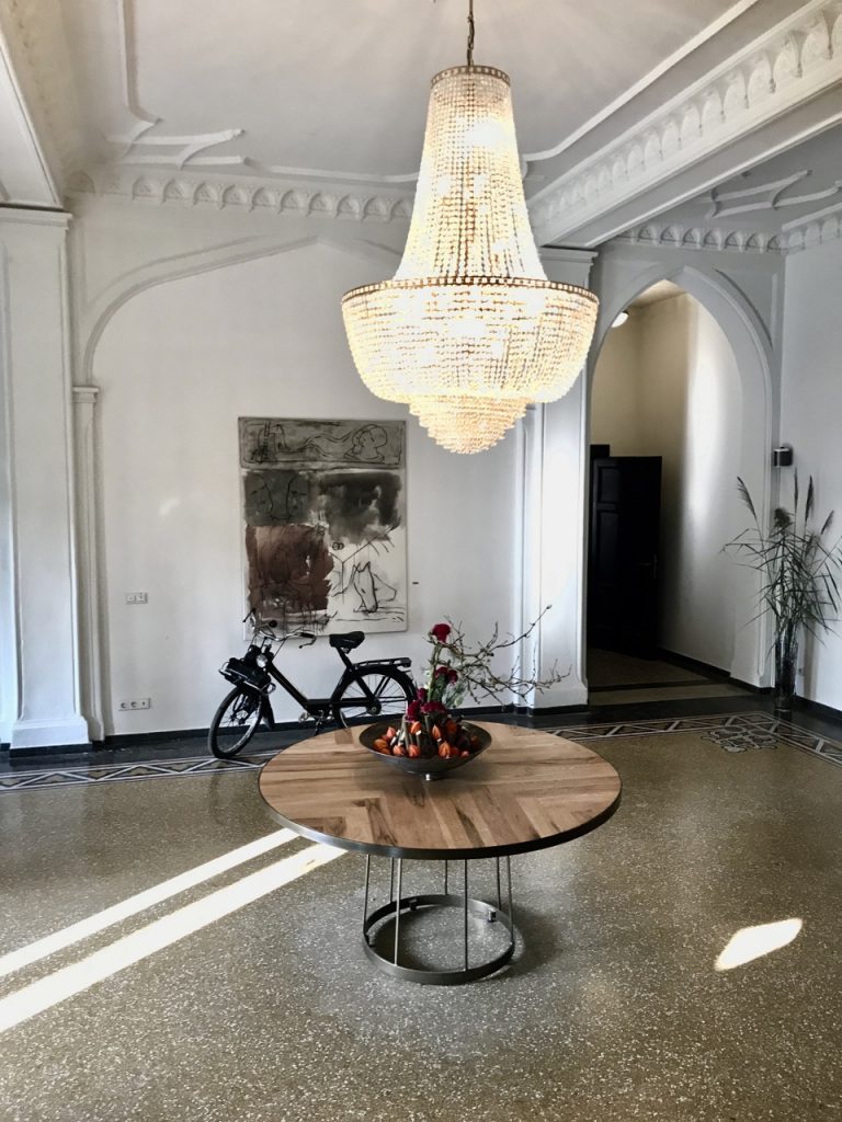 Der Holzboden knarzte als wir in das große Foyer eintraten. Ein riesiger Kronleuchter, ein modernes Gemälde und ein altes restauriertes Fahrrad – Vorboten eines wirklich geschmackvoll, modern eingerichteten Hotels. Ein kleines Schild wies uns den Weg zum Check – in, der sich an der Bar befand.
