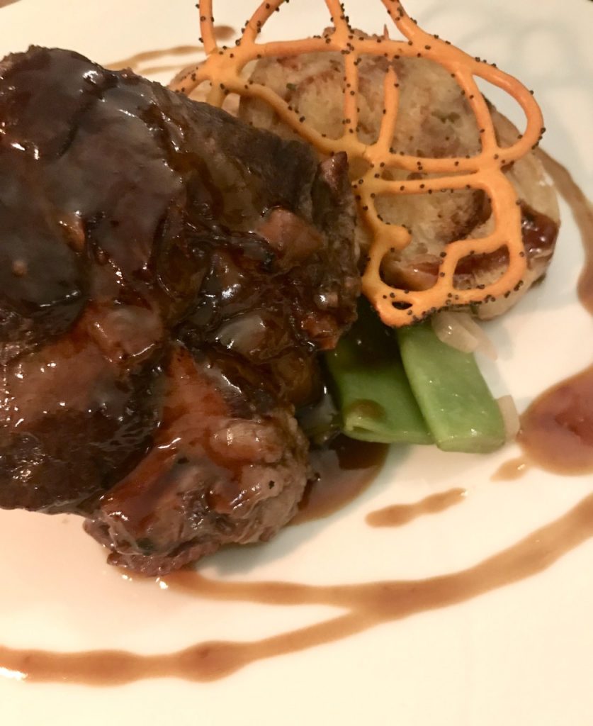 Beide Gerichte wurden mit Genuss und vielen ahs und ohs verspeist. Zugegeben, an der einen oder anderen Stelle war mir das Kotelett etwas zu durch und die Kalbsbacke hatte für den Geschmack meines Partners etwas zu viel Fett, aber die Gesamtkomposition war stimmig.