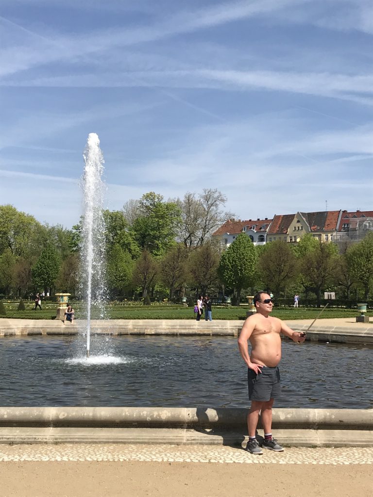 Familien, Touristen, Freundinnen, Pärchen – alles ist heute auf den Beinen und genießt die ersten Sonnenstrahlen des diesjährigen Sommers. Empört bin ich dann doch, als ich einen Touristen (hoffentlich war es einer) entdecke, der im Mallorca-Strand Outfit vor dem Brunnen ein Selfie nach dem anderen macht. „Junge, zieh Dir sofort etwas an“ möchte ich schreien und ihm den Selfiestick sonst wohin schieben. Aber ich belasse es bei einem gemeinen Foto, frei nach dem Motto „Er hat die Haare schön ;-)“.