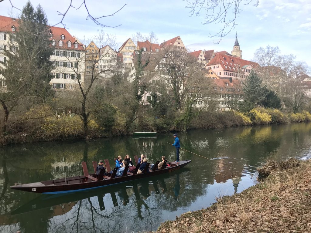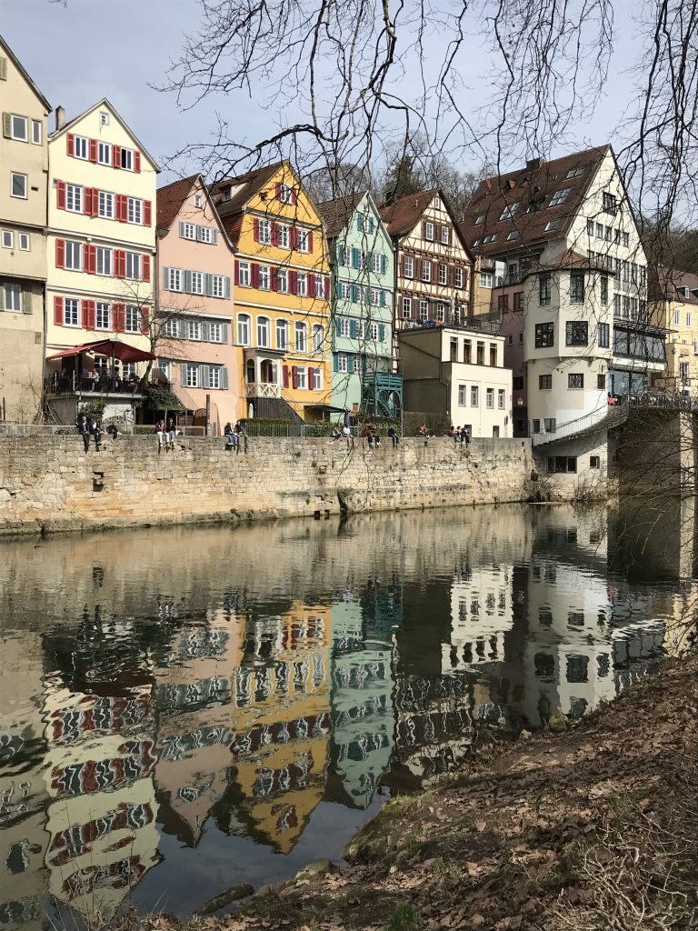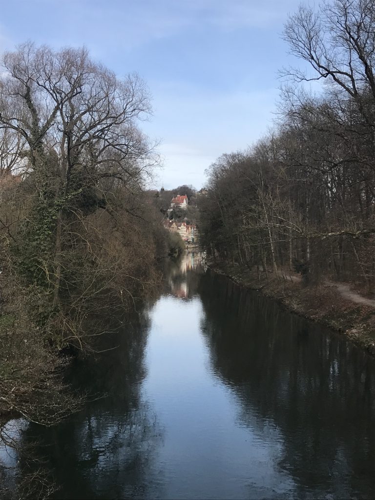 Wieder bringt uns die Bahn an unser nächstes Ziel – Tübingen. Von Göppingen sind es knappe 1,5h mit einmal umsteigen. Der Neckar begleitet uns die ganze Zeit über und immer wieder blitzen Wander-, Rad- und Skatingwege, die am heutigen Ostermontag gut frequentiert sind, neben dem Flusslauf auf.
